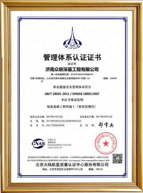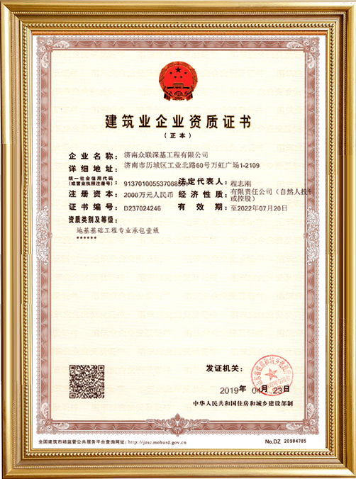 山東眾聯(lián)恒信工程集團有限公司成立于2010年4月20日,注冊資金2000萬元,固定資產(chǎn)8500萬元,公司主要從事地基基礎(chǔ)、勘察、設(shè)計等方面的專業(yè)承包,地基基礎(chǔ)專業(yè)施工資質(zhì)壹級。